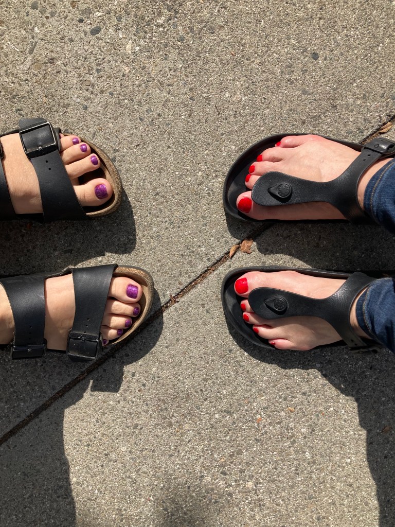 After the game, Gregorio took the kids home and Sarah surprised me with a mother-daughter trip to get pedicures. This was quite a treat since the last pedicure I had was on Mother’s Day when all three girls treated me to that and also a spa treatment. This gave Sarah and me a chance to chat without three kids wanting or needing to be part of the conversation. Not only did I get to have a lovely time with my oldest daughter, but we both emerged with some newly painted toenails. Very nice. Thanks, Sarah!