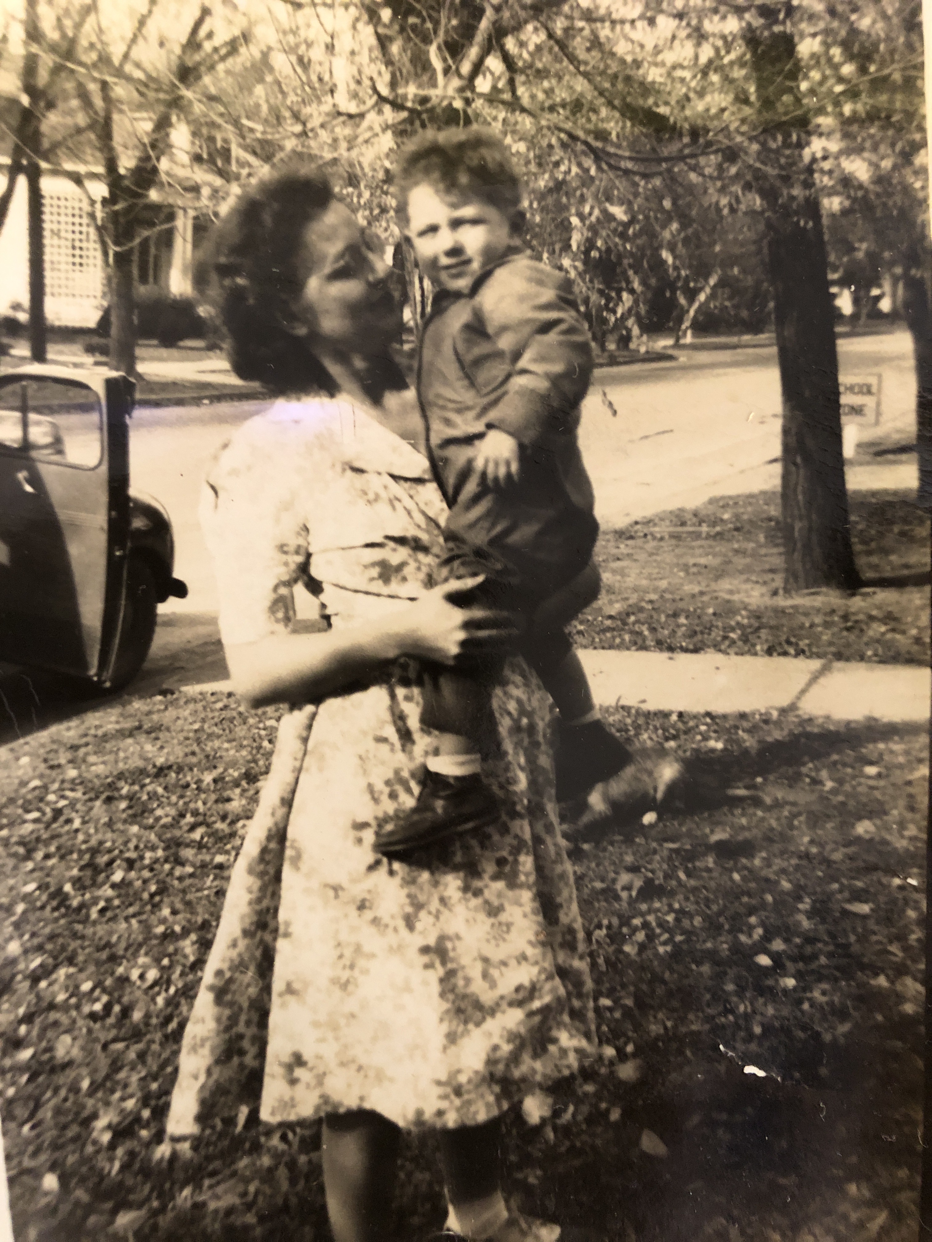 I’m sure this photo was taken in my hometown of Bonham, Texas. The sign on the lower right reads “School Zone.” I’m not sure exactly where this location is but I bet that house across the street is still there. I have to also note that the passenger door on the car is open. I’m guessing that Aunt LuVerne was the passenger and she jumped out and ran over to pick up her adorable little nephew as he toddled towards her. I’m not quite sure why John is dressed in a jacket and those sturdy little shoes while Aunt Luverne isn’t even wearing a sweater. However, I do love that she is wearing white bobby socks with her shoes, which was the style at that time.