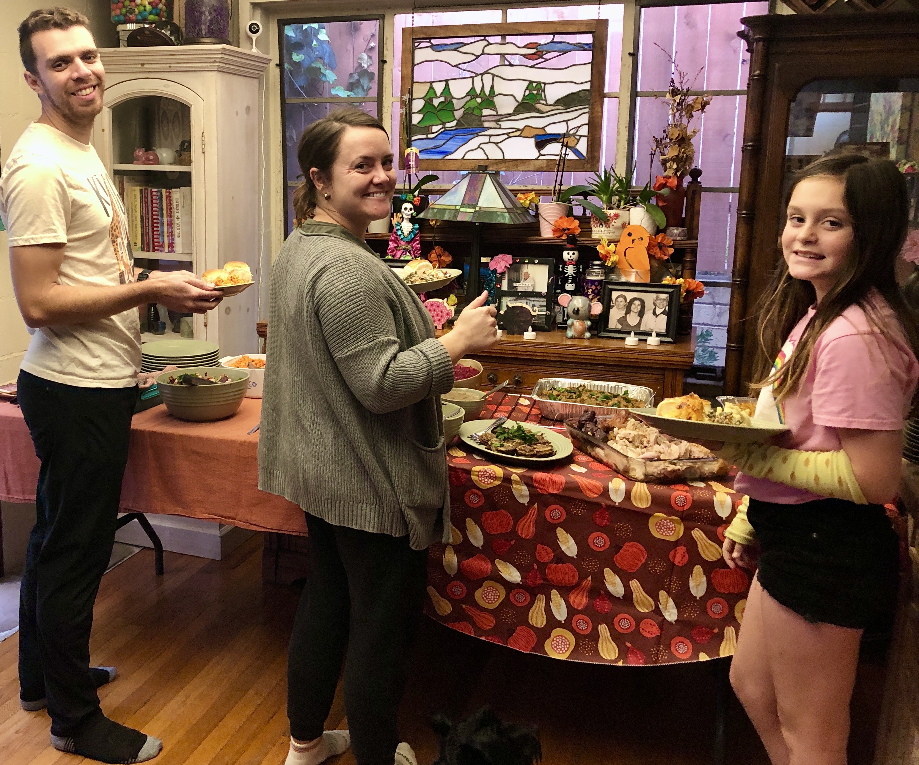 Today, our family gathered at Sarah and Gregorio’s house for our Thanksgiving. We celebrate on Friday so our daughters can be with their partners’ families on Thanksgiving Day. (Ray and I often join in, which is especially nice.) Today, we had lots of food, fun, and laughter. We left with smiles, though we’d all admit we were also a bit too full.