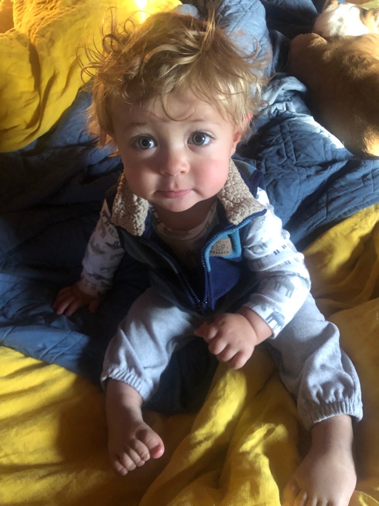 I would think that little Ethan was adorable even if he weren’t my grandson. He has big blue eyes, curly blond hair, a happy disposition, and a quick grin. He’s also tuned into what’s happening around him and can speed crawl with the best of them. He is about two minutes from standing up and running, which should add another wild and crazy dimension to his character, not to mention additional running and chasing for his already fatigued parents.