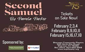 For those of you who live in the Texomaland area, I encourage you to see Second Samuel while there’s still time. You will not only have an enjoyable evening or afternoon at the theater, but you will also be supporting Sherman Community Playhouse, which is in its 75th year of existence. Who knows, you might even be inspired to volunteer or even try out for a role in one of the upcoming plays. I hear auditions are in progress for Agatha Christie’s Murder on the Orient Express.