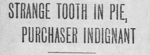 The quote, "Strange Tooth in a pie. Purchaser Indignant"