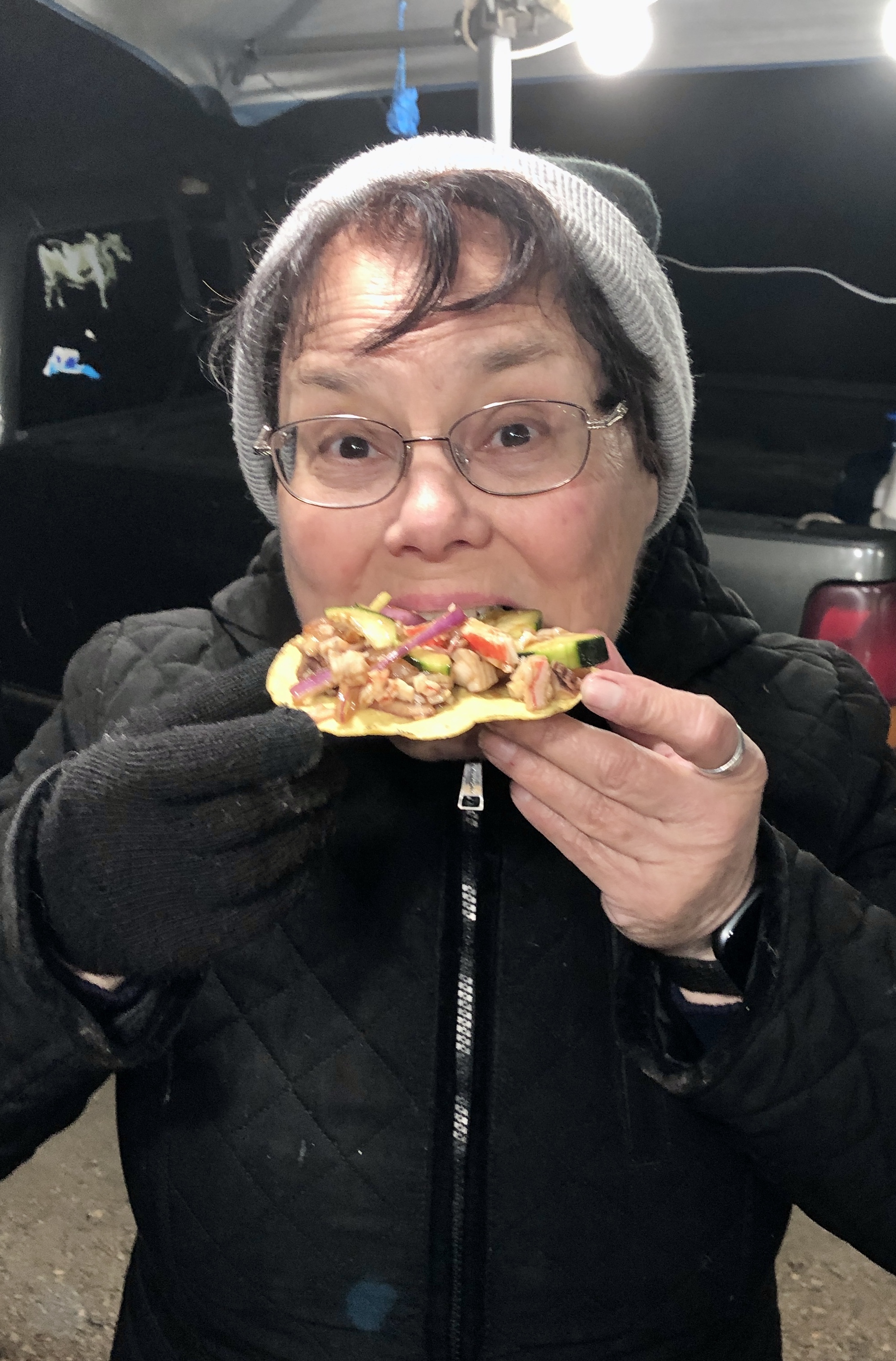 Tonight, we drive over to this food stand on Highway 33 between Oakview and Casitas Springs (right outside of Ojai) for dinner. The night was cold, but the food was hot, delicious, and plentiful. I had a chicken quesadilla that was so big I had to bring half of it home. The bean burritos were also huge. Everything was fresh and super tasty. The price for my chicken quesadilla was $12. An exceptional price for the quality and quantity of the food. If you happen to be in the Ojai area, be sure and check out Mariscos Y Tacos Ruby!