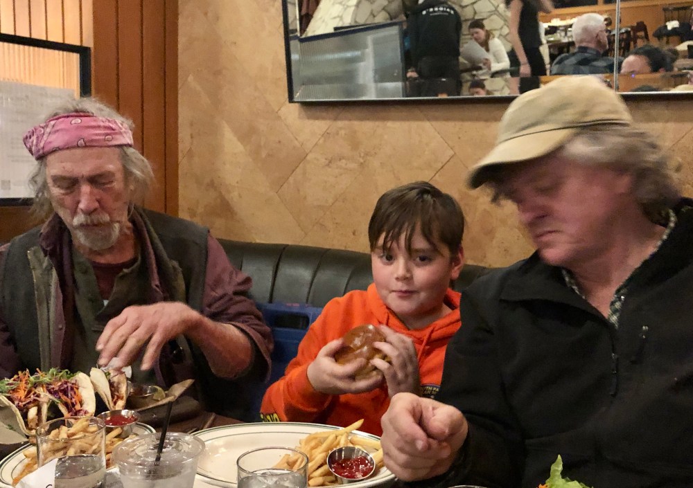 The man on the left in this photo is our dear friend of forty years, Sonny Crawford. He has been visiting us here at the orange grove for the past 8 days and will leave on Wednesday to return to Massachusetts, where his wife and two sons live. Ray met Sonny when our daughter Sarah and Sonny’s son Tinian were two. The toddlers started playing together at a pizza parlor in Brimfield, Massachusetts, where both Ray and Sonny had come for the Brimfield Antique Market. Ray was there looking for restaurant decor for the Chili’s chain, and Sonny was selling the art pieces he’d imported from Southeast Asia. As the kids played, Sonny and Ray became fast friends; a few days later, when I met Sonny, he and I also became fast friends.
