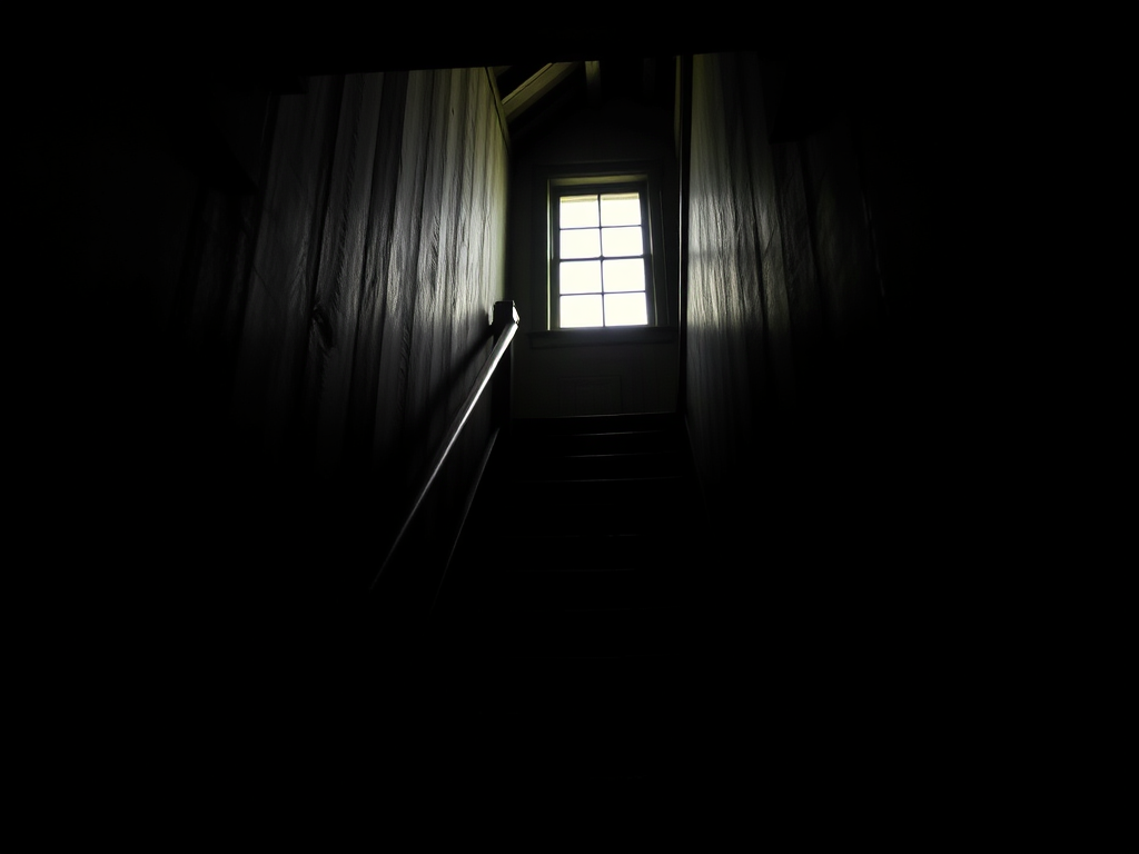 I banged the lid on the box, bolted down the dark staircase, pounded on the door, and called for help. No sound came from the second-floor hallway—my brothers had clearly run away, fearing the trouble they’d get in. I banged again but got no response. Instead, I heard a loud creak at the top of the staircase, followed by another, as if someone in heavy boots was descending. Heart racing, I screamed at the top of my lungs. Soon, my father turned the lock, opened the door, and grabbed me.