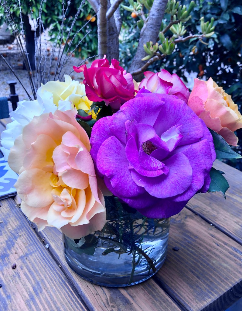 Ron’s gift from Ray and me, roses from our cutting garden, plus we’re babysitting tonight so Liz and he can go out for a birthday dinner.