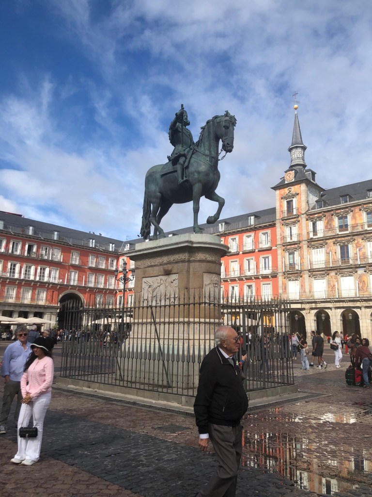 After breakfast today at the hotel, our group took a guided bus tour around Madrid, then visited the Royal Place. Don’t worry, we didn’t see all of the 3,000-plus rooms, but rather only 26. Afterwards, about half of us walked back to our hotel (the others took the bus).