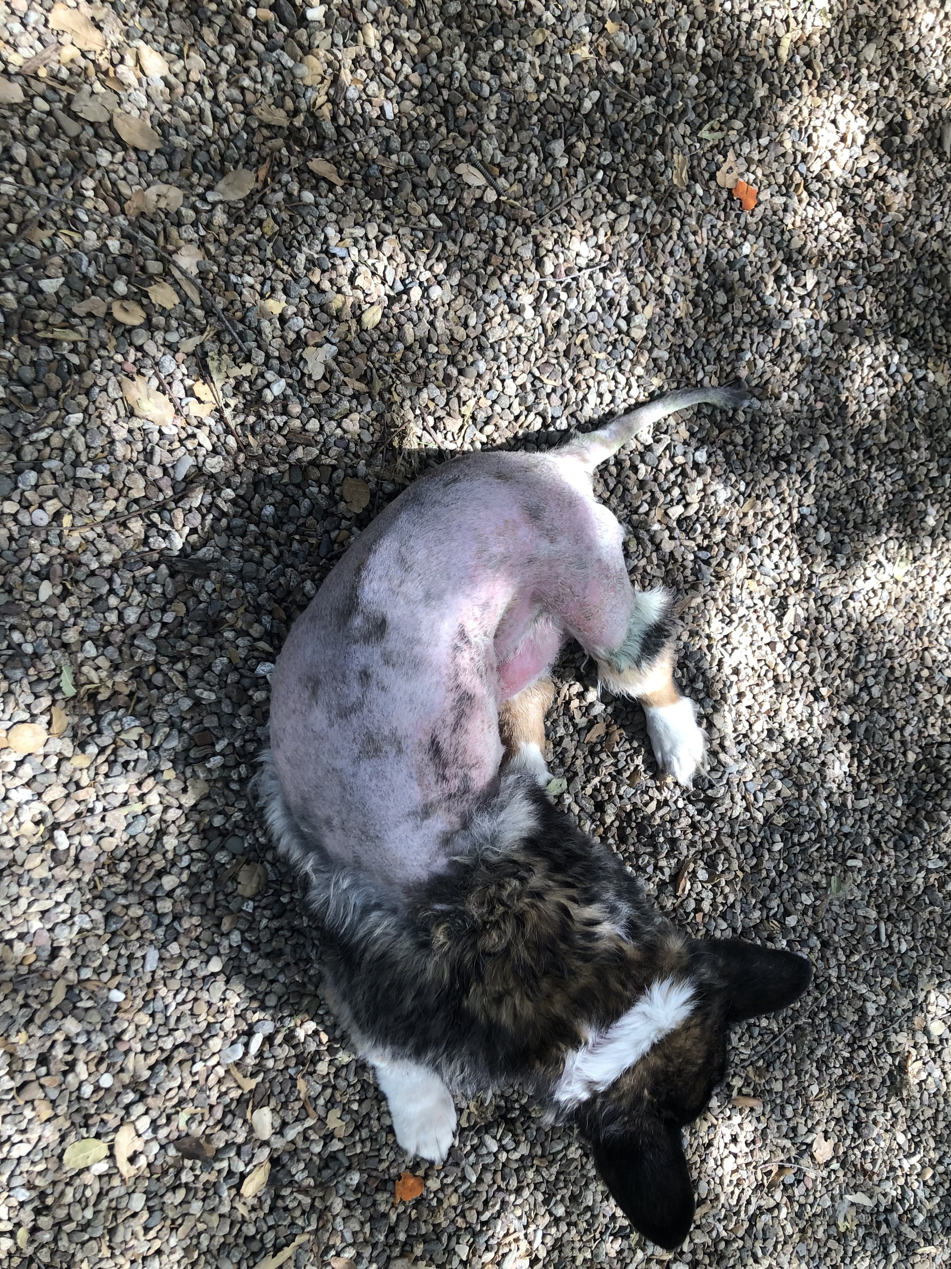 My old dog lies on the floor I’m not sure if she’ll live or die