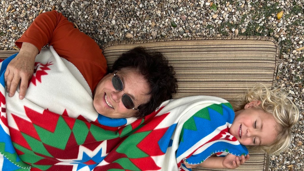 “Here, Memaw, have a little bit of the blanket, it’s chilly.”